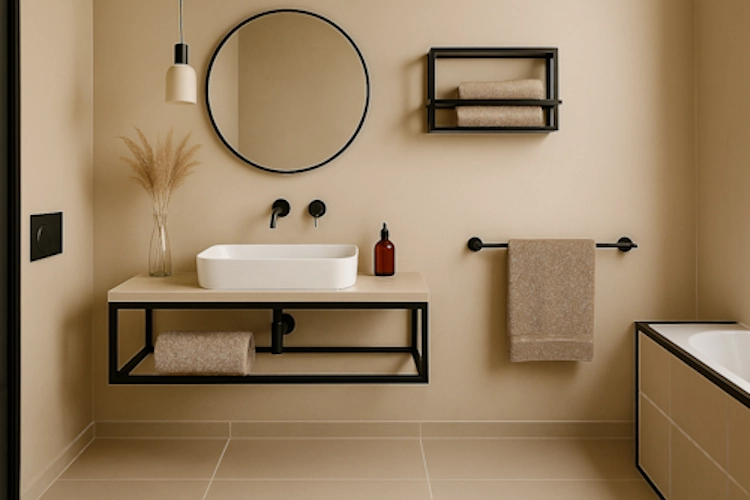 Metalen afwerkingen zoals chroom of geborsteld staal geven een verzorgde en eigentijdse look. Ze zijn stevig, slijtvast en passen goed in een moderne badkamer. Door ze regelmatig droog te maken blijven ze mooi en behouden ze hun glans.